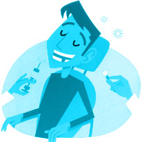 Dental implants are basically cleaned in the same way as your natural teeth. However, it is particularly important to clean in between the implants or between remaining teeth and implants. Special interdental brushes may be used to facilitate this, along with dental floss.